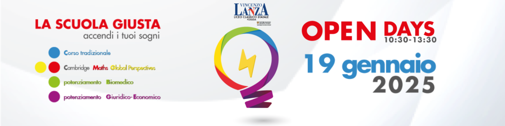 Prendi parte agli OPENDAY in presenza, e vieni a scoprire il Liceo Classico “V. Lanza”. Interagisci con docenti, alunni ed approfondisci nel dettaglio l’offerta formativa dell’a.s. 2024/25.