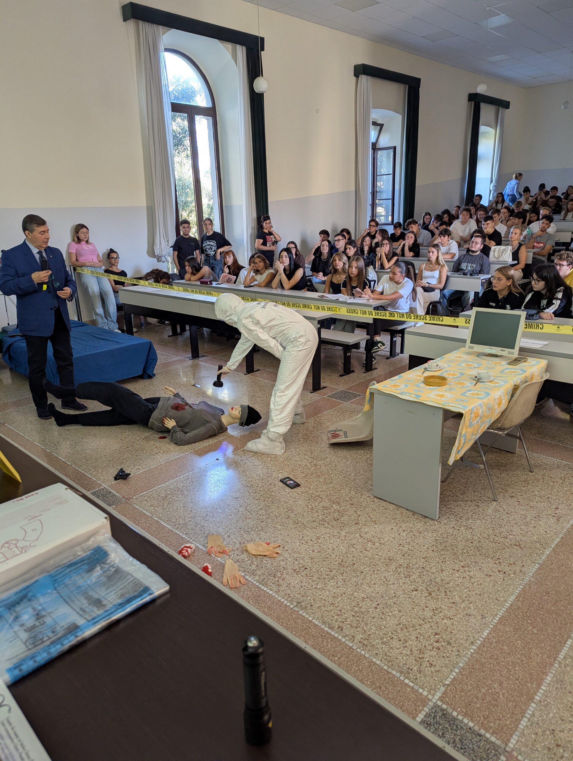 Giovedì 25 settembre 2025 presso il Dipartimento di Giurisprudenza dell’Università degli Studi di Foggia la classe 3^F con potenziamento giuridico economico del Liceo Classico “V. Lanza” di Foggia ha partecipato ad un interessante laboratorio dal titolo Sulla scena del crimine alla ricerca delle tracce: il nuovo paradigma investigativo dall’effetto “trasloco” al “laboratorio a cielo aperto”.